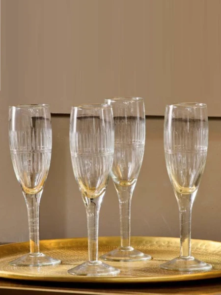 The transculent generously proportioned hammered glass of the Mila champagne flutes adds to the elegance of these timeless glasses. The recycled glass material is expertly decorated with a striking etched pattern that elevates the simplicity of the glass. Dimensions: 22cm x 5.3cm x 5cm Care: Dishwasher Safe