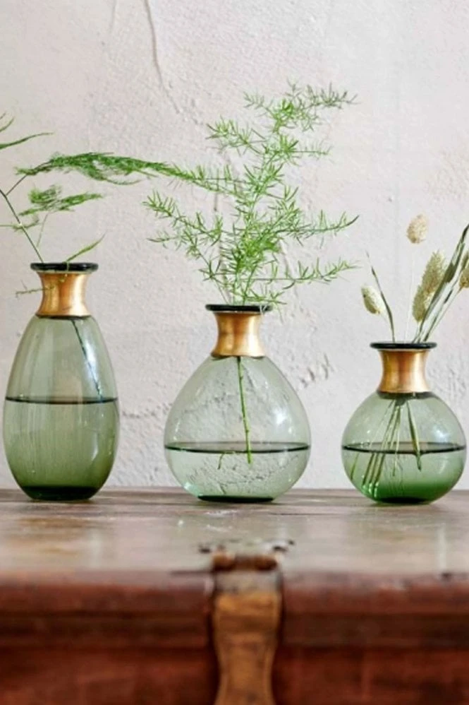 Nkuku Miza Mini Glass Vase in Green – Handcrafted Home Decor for Modern Interiors