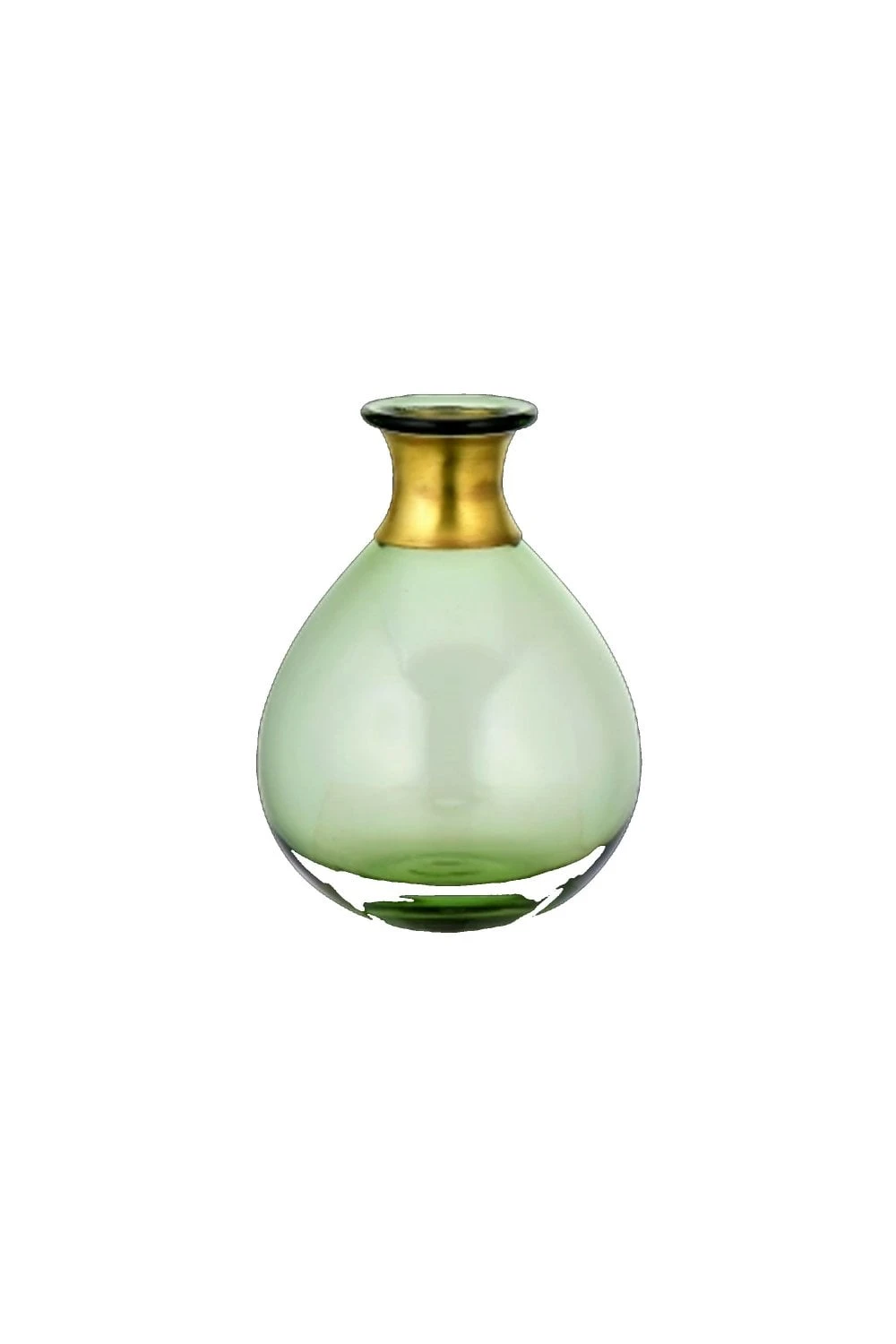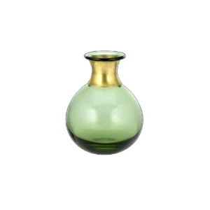 - The Nkuku Miza Mini Glass Vase in Green is a beautifully handcrafted piece, designed to add a touch of elegance to any room. Its compact size makes it perfect for small spaces or as part of a larger display.