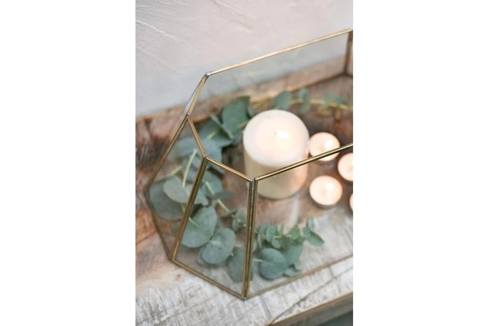 Nkuku Morvi Lantern Recycled glass Brass frame Handmade Geometric design 18 x 38 x 26cm Product Code: 30409 Nkuku’s Morvi Lantern is the perfect piece for adding an elegant edge to your home. Handmade from recycled glass, the lantern features hand forged and shaped brass around the glass for a characterful touch, and offers a geometric design that looks amazing filled with everything from t-lights to cacti and succulents. Ideal as a centrepiece for the dinner table, the lantern also looks amazing in the hallway or as a decorative piece in your lounge.