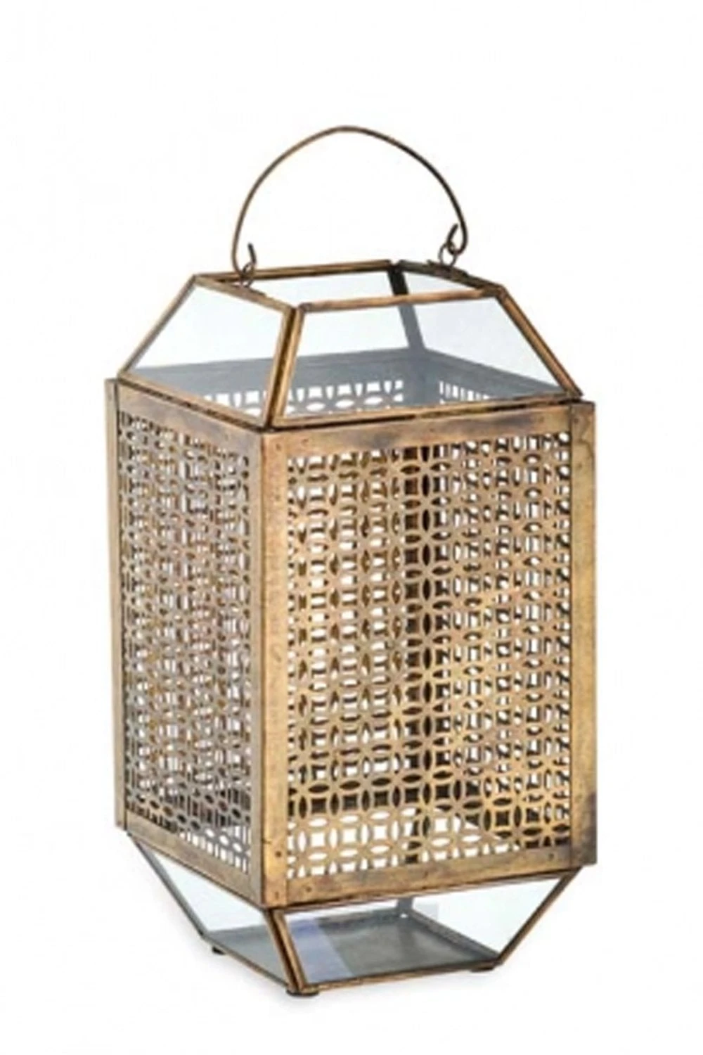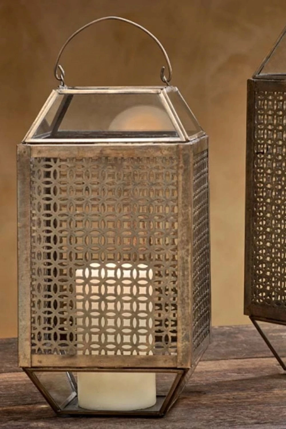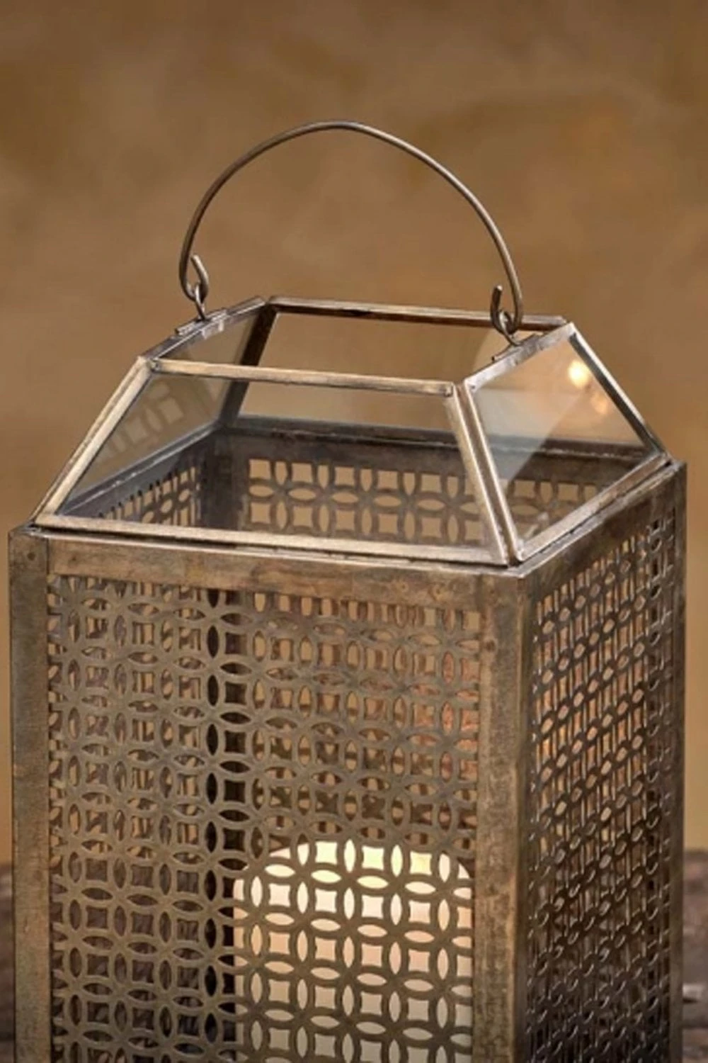 Nkuku Nakko Lantern in Aged Antique Brass – Handcrafted Room Decor & Candle Holder
