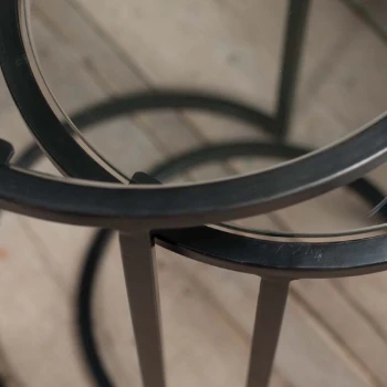 These lovely Nakuru iron and glass side tables are the practical and stylish solution for the living room. They come in a set of two and the smaller fits neatly inside the larger table. Made of iron and glass, their simple design will work with most interiors.