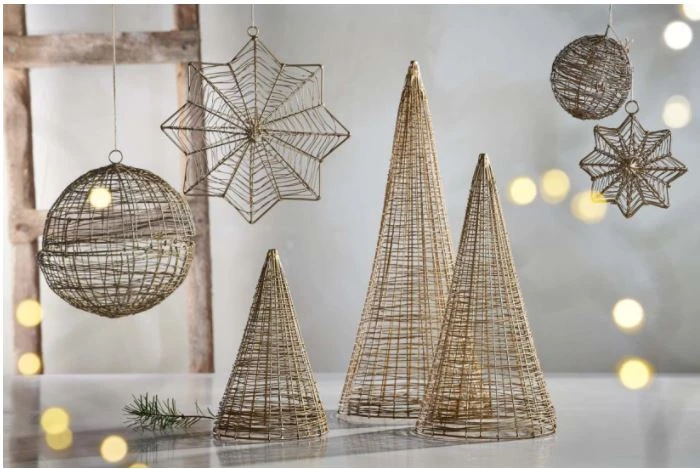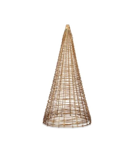 These Ngoni brass trees come in a simple conical shape. The golden brass wire is intricately bound around the cone shape. The simple design offers a bold version of a Christmas tree, dress with fairy lights and foliage for a truly festive display.