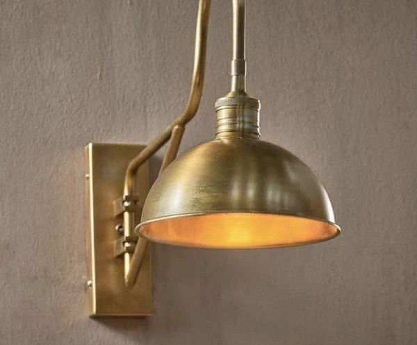 Timelessly elegant, the large Pulau wall light has an attractive swan neck arm and brass shade. The golden hues of the brass add a sophisticated finish, with the long arm offering a good amount of reach. Position either side of a bed for a striking bedside light, or over a table table in a kitchen dining space. The stylish brass shade diffuses the light, making an ambient glow, perfect for creating a cosy reading nook. Style above an armchair or in a study area. Product Dimensions 33cm h x 21cm w x 72cm d Antique brass