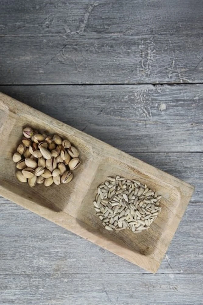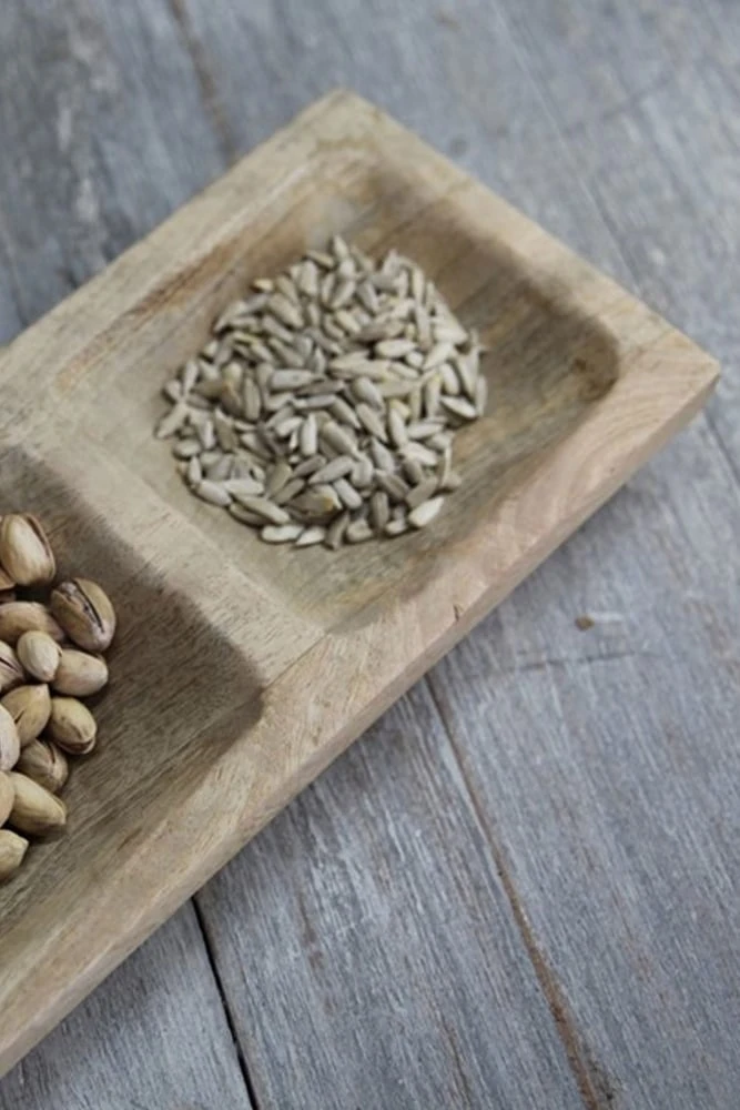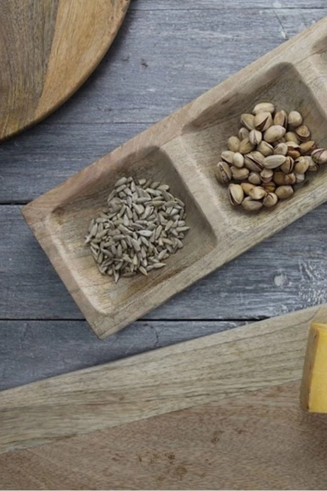 Nkuku Raki Wood Platter Sustainable mango wood Handmade Four compartments 3.5 x 50.5 x 12.5cm Product Code: 28354 Handmade from sustainable mango wood, Nkukus Raki wood platter is the perfect option for dinner parties. With four compartments offering the ideal size for nibbles, antipasti or tapas, the platter has been hand-carved to really show off the beautiful grain of the wood.