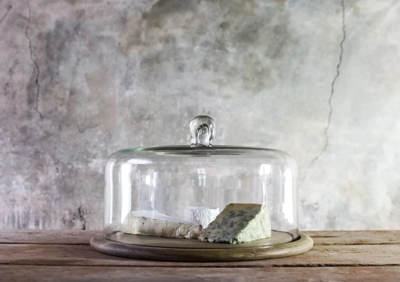 • The dome features a sturdy glass construction with a polished finish, ensuring durability and a timeless aesthetic for your kitchen or dining table.