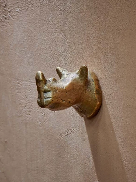 The brass features of this characterful rhino make a playful storage solution. Mix with other animal hooks for a fun interior feature. Perfect for hanging bags, hats and scarves. Colour: Antique Brass Dimensions: 4.5 x 4 x 5.5cm Material: Brass