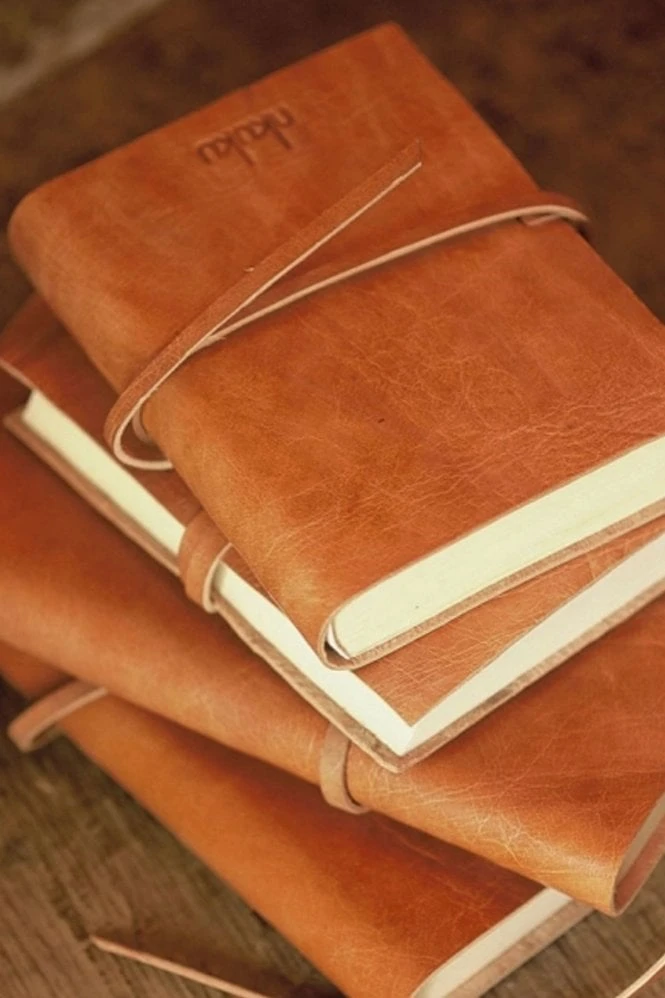 Nkuku Journal Rustic Tanned Leather Fairtrade Handmade from untreated leather, dyed with vegetable extract and tree bark The leather is a by-product Handmade paper Cotton paper Each sheet is made by hand and dried by the sun A4 and A5 size available To clean wipe with a dry cotton cloth 41195