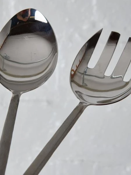 Our Sirkali Salad Servers are made from durable stainless steel; the handles are hand forged using traditional techniques, creating a characterful textured finish. Choose from brushed silver, black or gold. This stylish cutlery collection comes in a gift box. These brushed silver salad servers have hand forged handles that wrap around a stainless steel serving spoon and fork. A great addition to the table. Care Instructions: Dishwasher safe