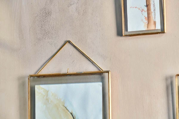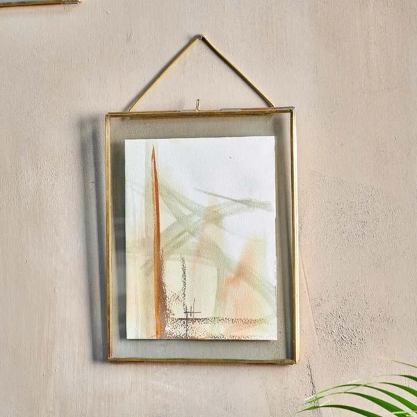 The striking design of our Sambas Portrait Aperture Collection is handcrafted with brass skilfully shaped around the glass. A functional fixed brass hanging is incorporated into the design adding to the sense of style and practicality. The see-through design creates an attractive back drop for photographs and artwork. Words of Wisdom The metal is skilfully soldered around the glass with traditional tools; this handmade process means that there are weld marks on the joins of each piece, a feature that we love as it tells the unique story of how the product is made. Care Instructions To care for your frame, we recommend regularly wiping with a soft, dry cloth to prevent the build up of dust or dirt. We recommend a microfiber cloth in a circular motion for the glass. Dimensions: 36cm x 29cm x 0.5cm (Full height when hanging is 47cm) Made in India