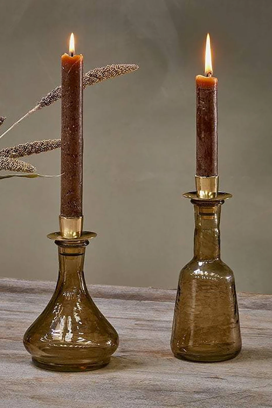 The Sirsa candlestick holder has a nostalgic sepia tone and is topped with a removable antique brass candle holder which fits a standard dining table candle. The candlestick holder can also be used as a vase once the top brass is removed. Nkuku is an ethical, eco-friendly home and lifestyle brand creating beautiful handmade pieces to add character and style into your home. Each piece is designed with traditional skills and natural materials.