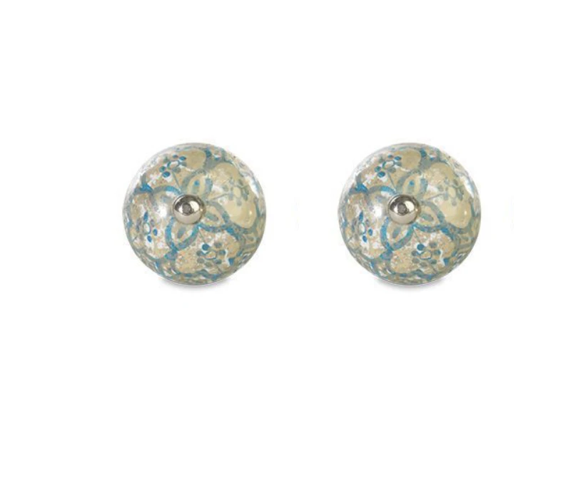 These elegant round ceramic door knobs are rich with character. Their pretty designs and vintage washed glazed makes them an attractive vintage piece.