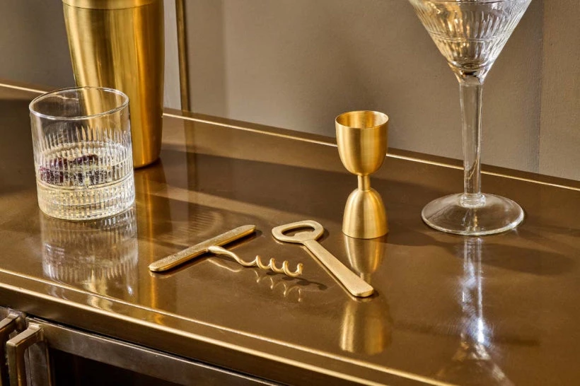 The Rahuri drinks set would make the perfect gift. The set includes a cork screw, bottle opener and drinks measure. Each one is made from stainless steel with a hand forged handle, and the warm brass finish adds a stylish touch to this practical set. Miscellaneous : Bottle opener 15 x 4 x 0.5cm, Cork screw 11 x 11 x 0.5cm, Measurer 9.5 x 4.2 x 4.2cm.