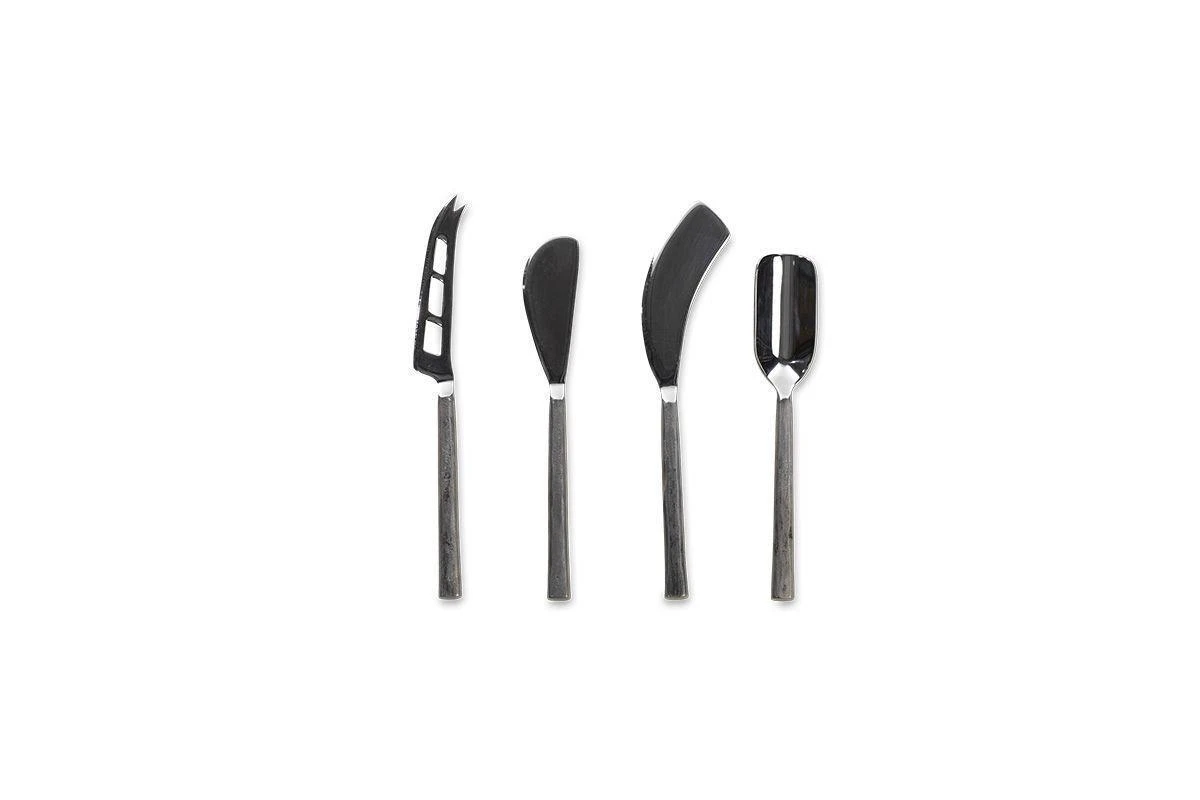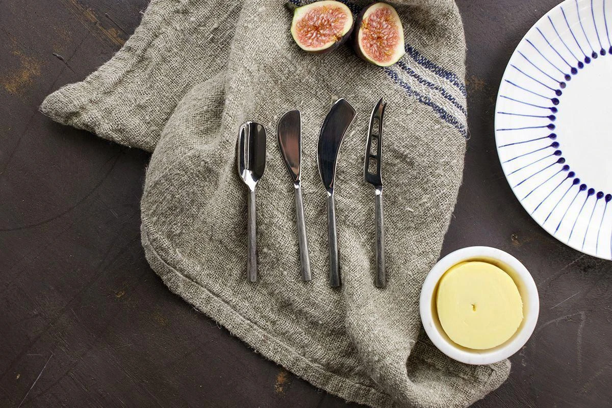 Our Cheese Knife Set is forged from brass and finished in brushed silver. The rustic artisan look adds interest and character. The set is presented in a stylish gift box making it a great gift as well as essential accompaniment to a cheese board. Our cutlery has an artisanal look with a practical and tactile handle shape. Each piece is made from durable stainless steel; the handles are forged using traditional techniques.