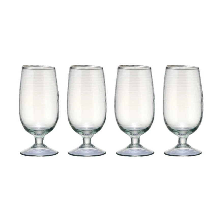 These generously sized Yala glasses from Nkuku are perfect for a variety of tipples, from long drinks and craft beers to cordials and milkshakes. They come in a set of 4, the pretty hammered detailing creating a softly shimmering finish and the short stem making them both stylish and useful. Dishwasher safe.