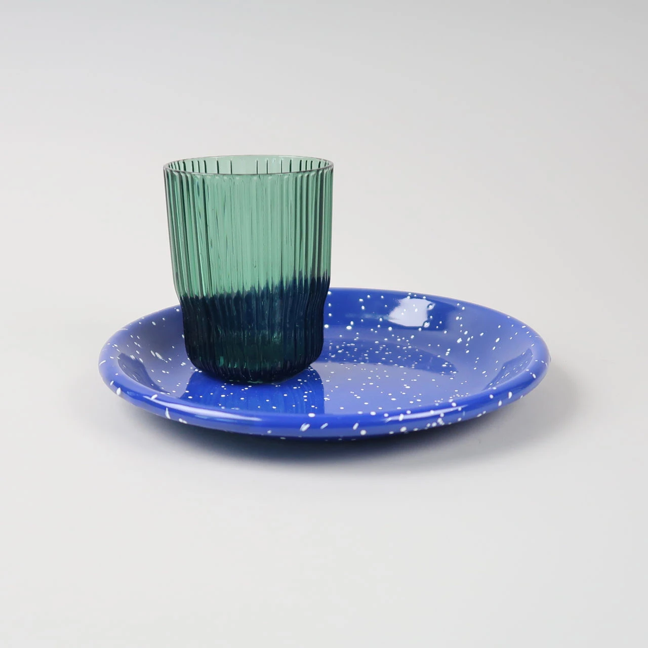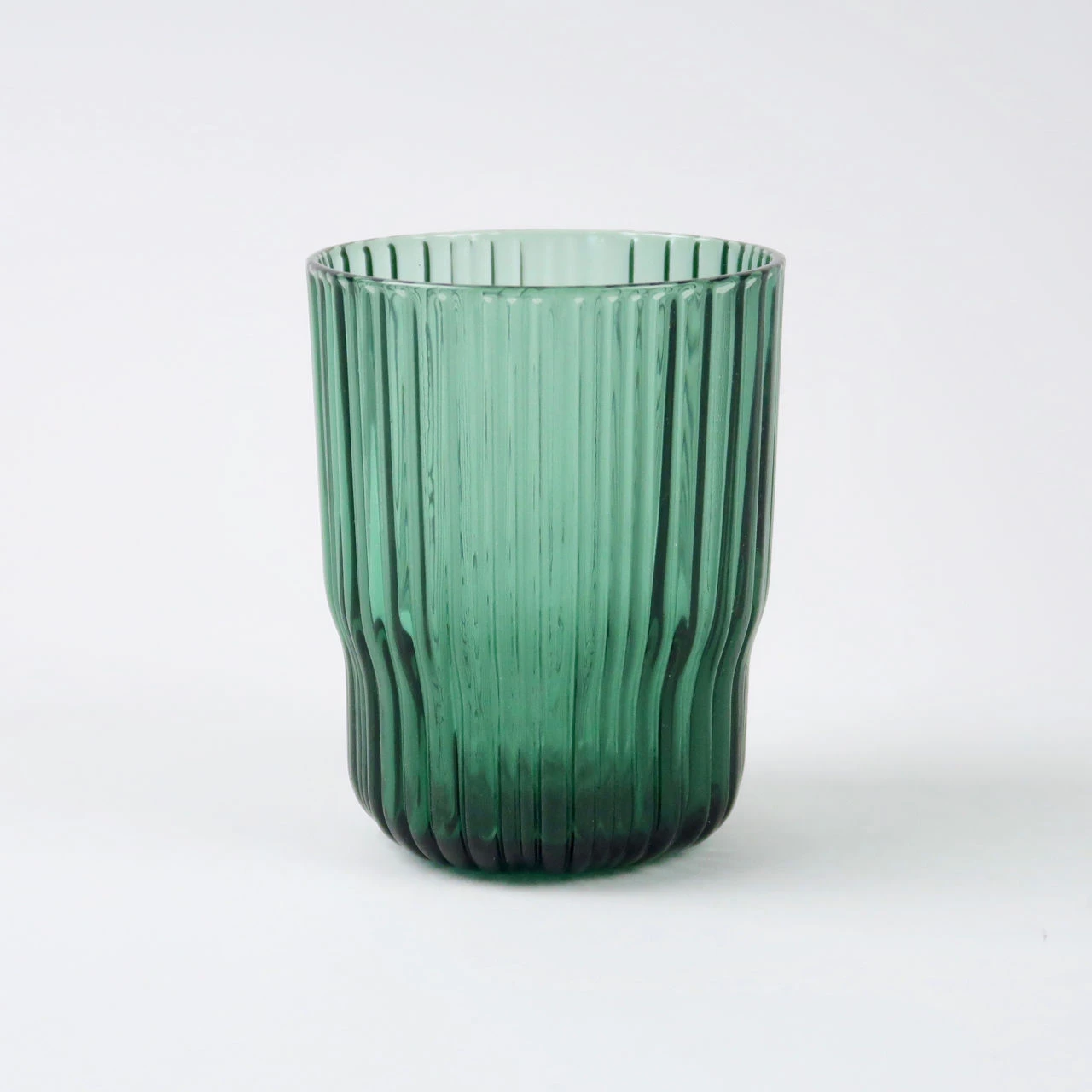 Fali teal glass tumbler. This teal coloured drinking glass is somewhat reminiscent of 70s Scandinavian glass with its slightly irregular textured and ridged surface. The colour of the glass is great; not a bottle green but something with slightly more blue in it. You don’t need me to tell you what to put in your glassware but everything from a glass of tap water with ice and lemon to a weak strength Ribena would fit the bill. Box of 4 glasses. Measurements: Height: 10cm, Diameter: 8cm. The cool teal hues of our Fali ribbed tumblers radiate a stylish and subtle mien that brings interest and colour to a table setting.