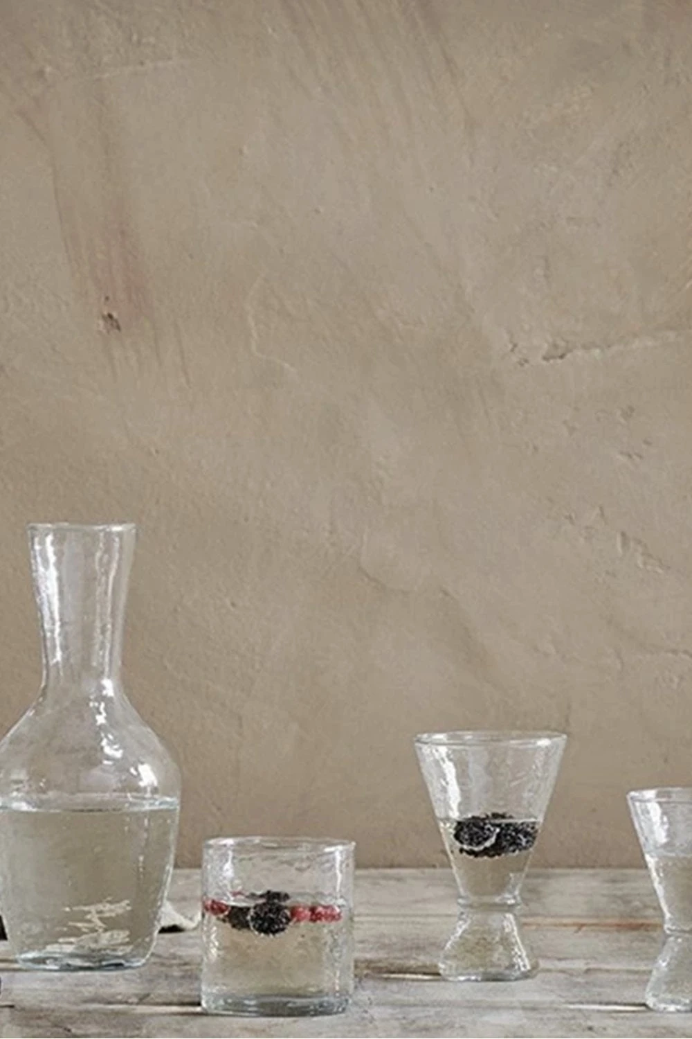 We use recycled glass to make these collections. Firstly, the waste glass is collected and washed to remove any impurities; it ís then crushed and melted down before being hand blown or placed in moulds to create beautiful new products.