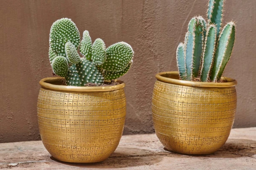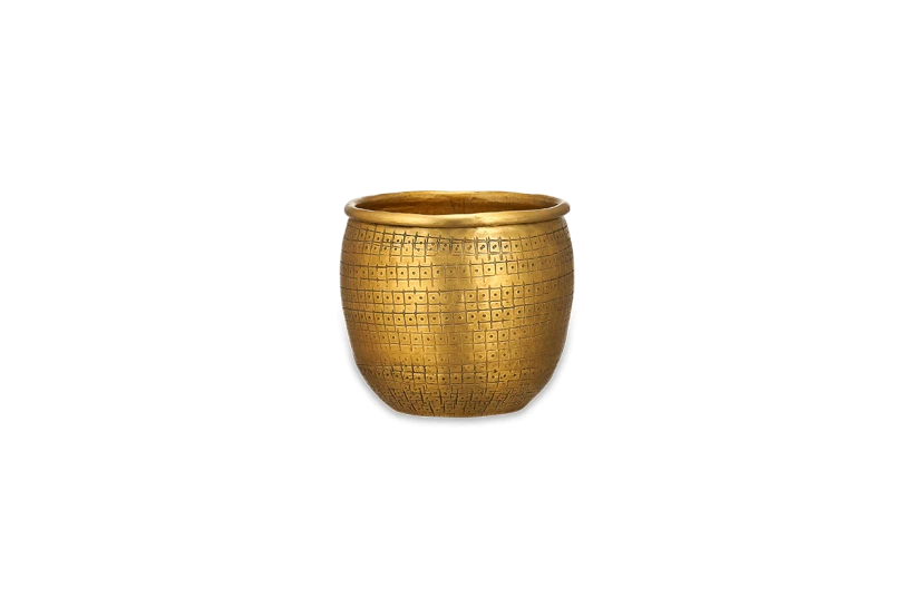 Planting has never looked so striking with our Tembesi collection of planters. Handcrafted from aluminium and finished in a warm brass hue, the collection is ideal for house plants, cacti and succulents. The etched detailing on the exterior is all made by hand and gives this eye – catching collection a real point of difference.