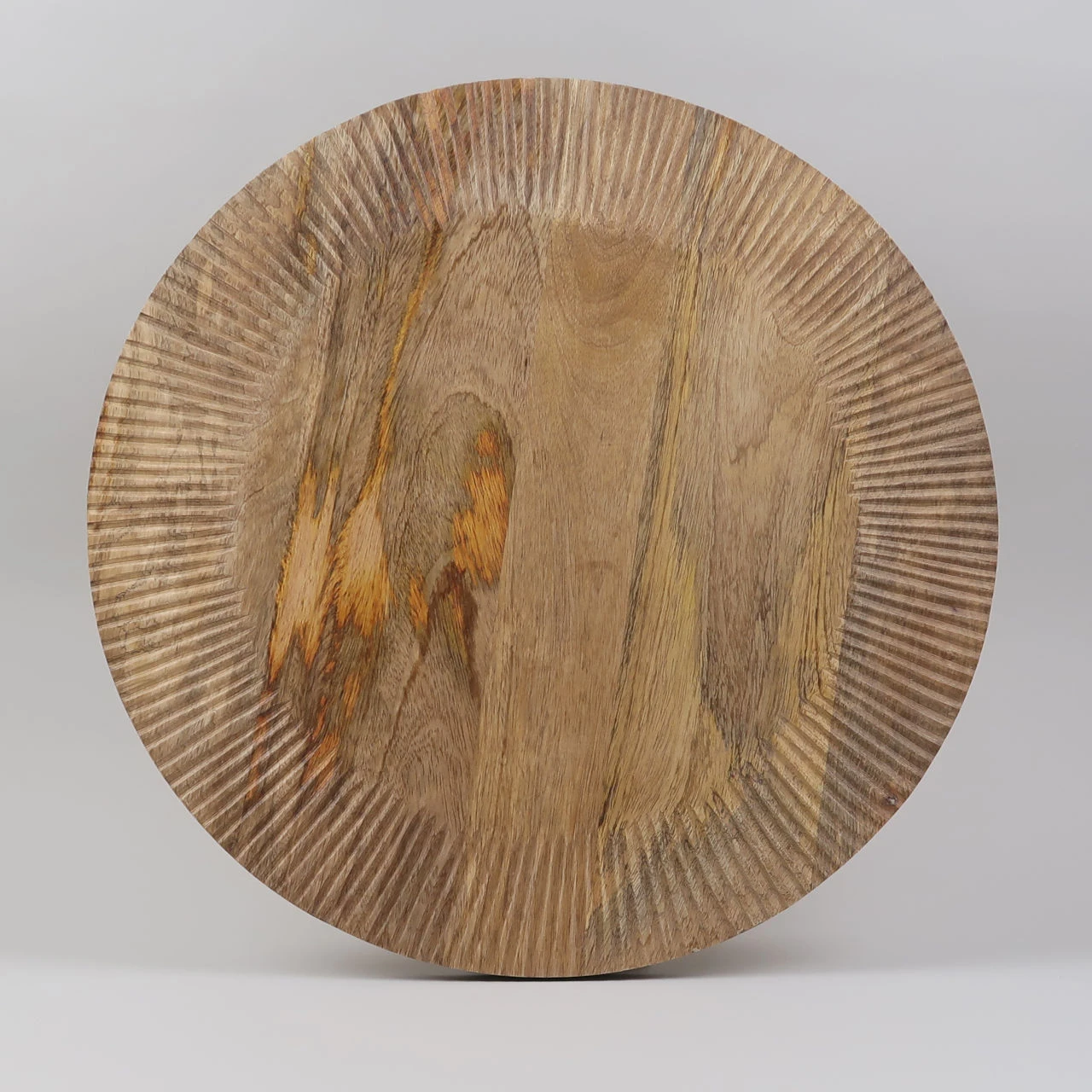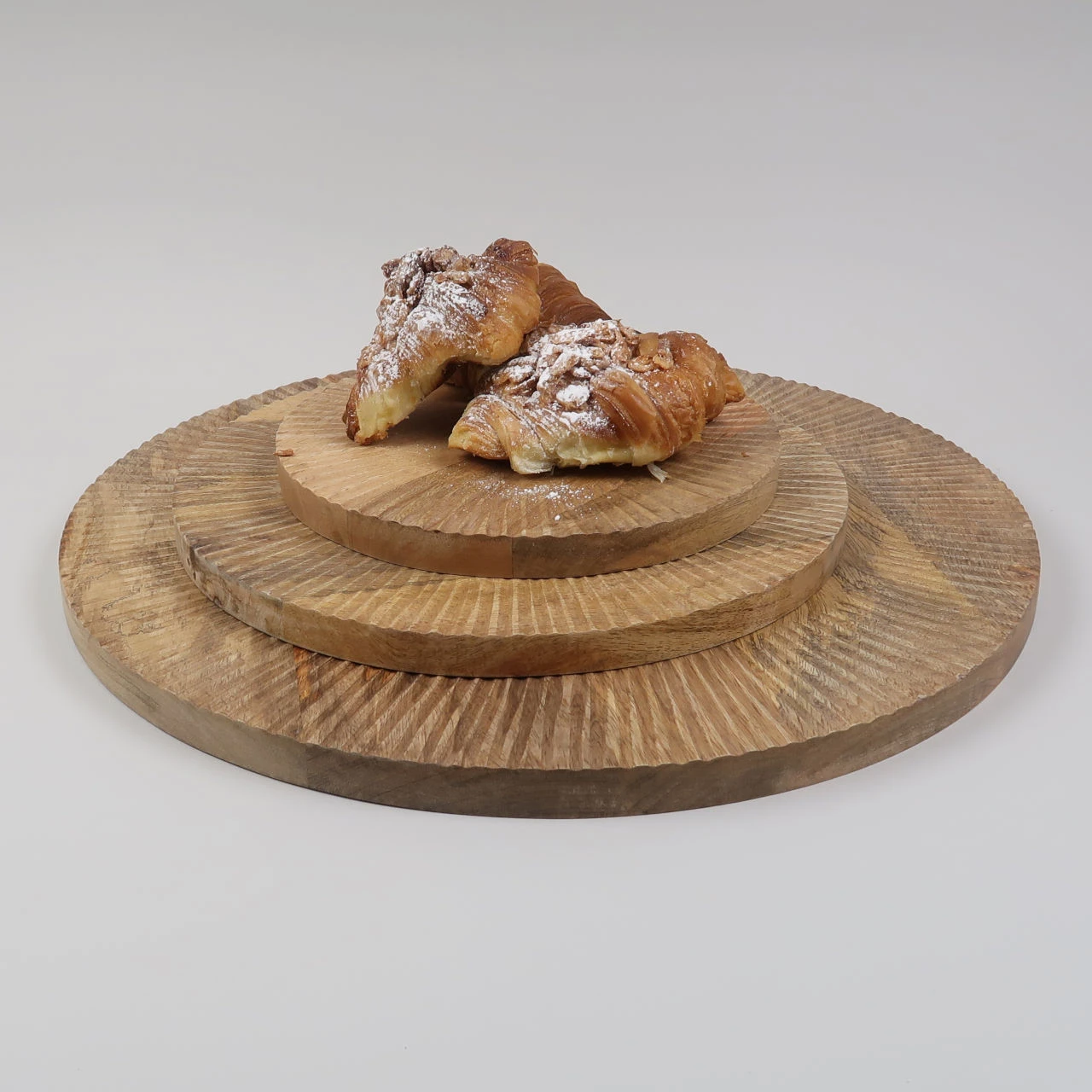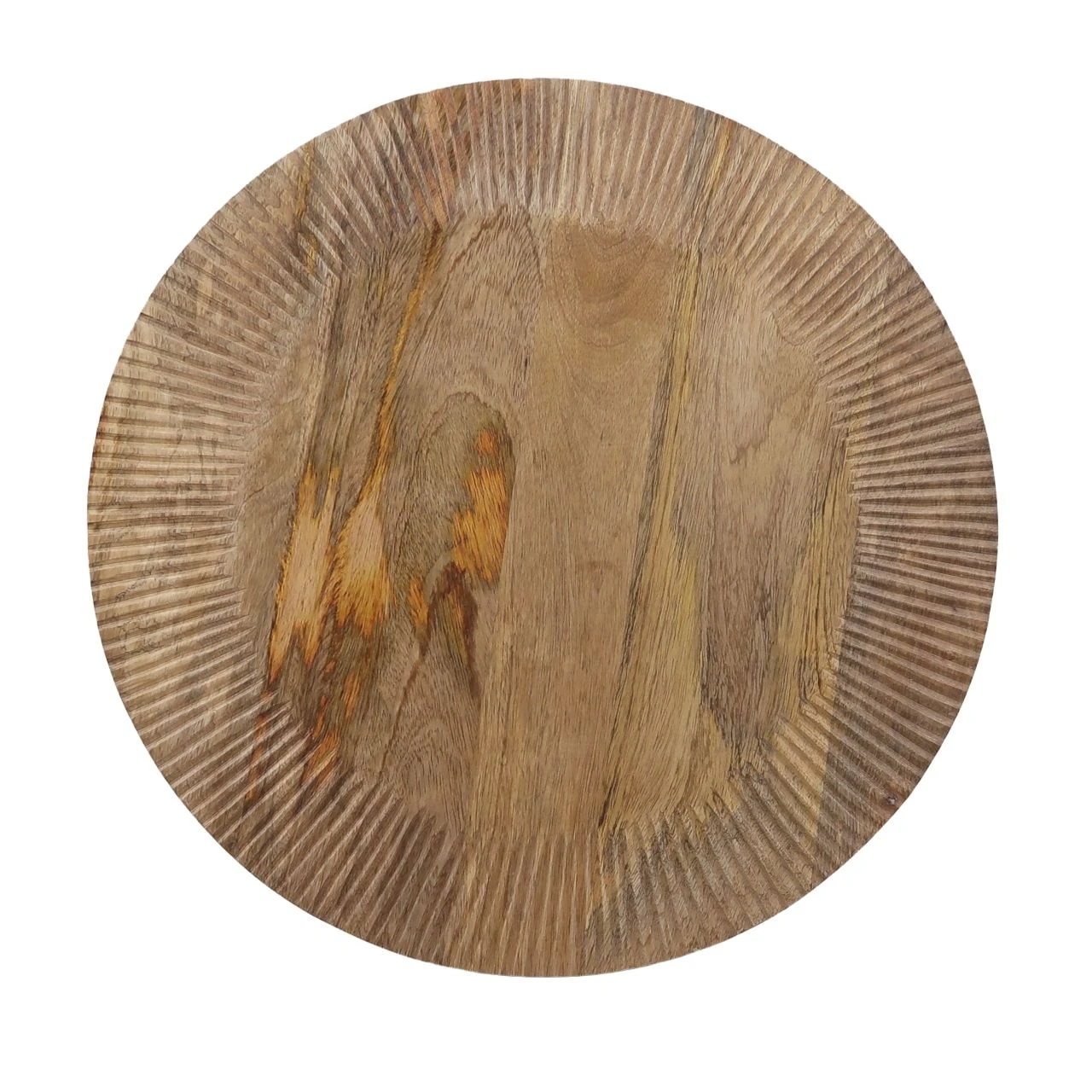 Decorative yet practical, this round Soria Chopping Board is hand carved from sustainable mango wood. The board features a pretty, hand crafted etched edge, resulting in a textured and pattern that elevates the board from the slightly more prosaic plain chopping and serving boards