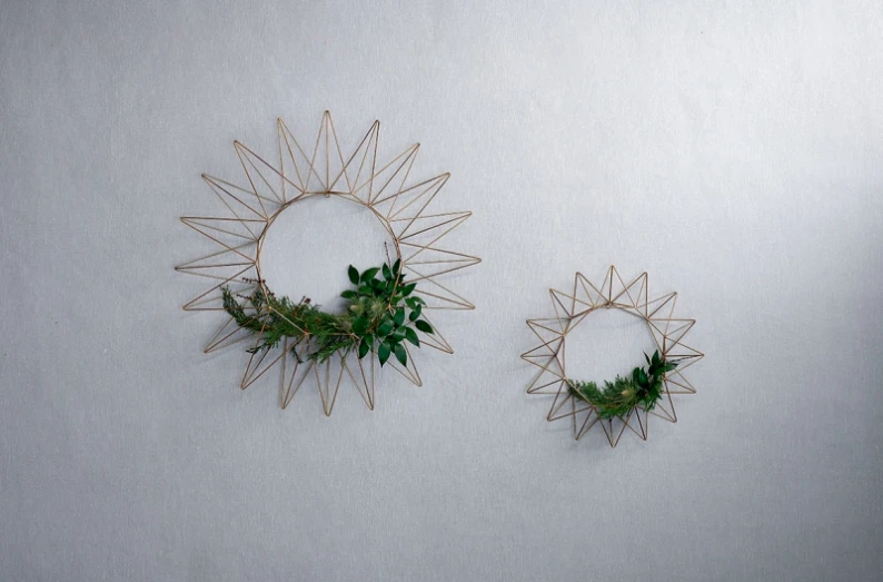 These eye catching Talini brass wreaths are made up of a series of geometric shapes. They make a striking table centre or wall hung decoration. Keep it simple or dress with fairy lights and foliage.