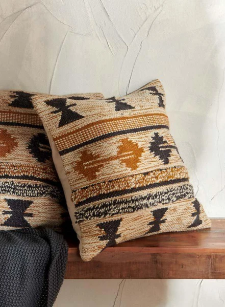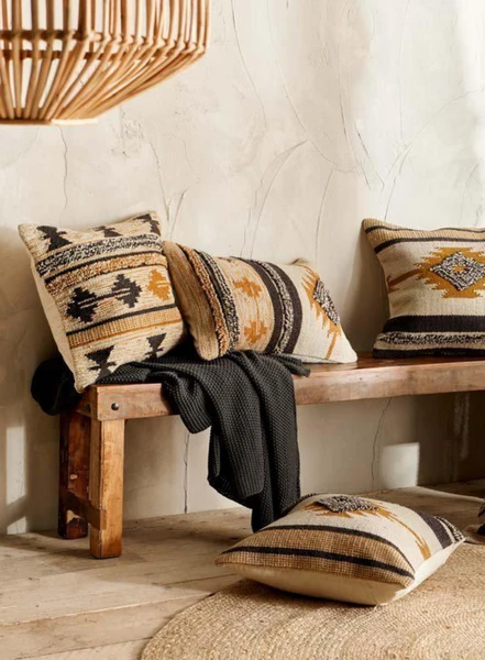 Bring colour and texture to your interior with these striking Tussi Ami cushion covers, they combine an earthy colour palette of mustards, neutrals and blacks in a striking design. Product dimensions: 50 x 50cm Colour: Mustard & Grey Material: Wool & Cotton Country of Origin: India Suitable for Outdoor Use: No To care for this cushion cover, clean spills immediately by blotting with clean sponge or cloth. Can be professionally cleaned. Colours may fade in direct sunlight.