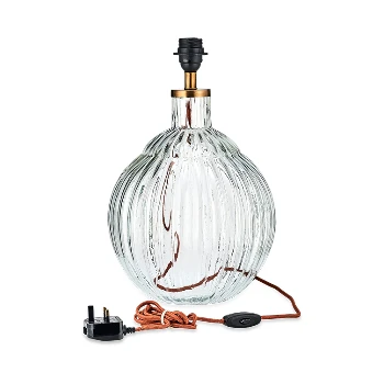 These lovely new Varanisi Wide Glass Lamps from Nkuku are made from recycled glass by artisan makers in India for Nkuku (a supplier of ethical, eco friendly and handmade products). The striking lines of this lamps make for a lovely textured finish to the glass. Combine with a beautiful lampshade for a fabulous effect. Also available in a Tall design.