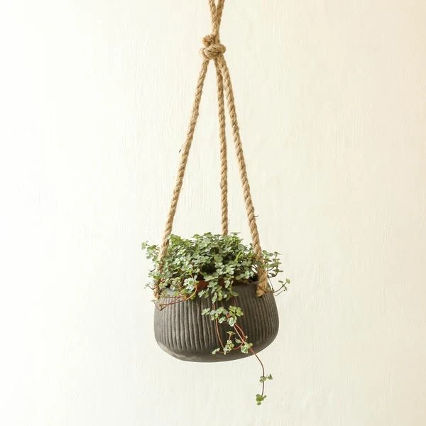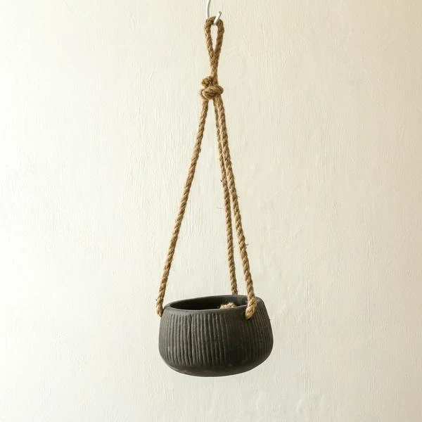 The earthy tones and endearing ribbed design detail, make Wampu Hanging Planters the perfect display planter. Hung with rope the planters are well suited to trailing plants. 9 x 16 x 16cm Please note there are holes in the base of planters.