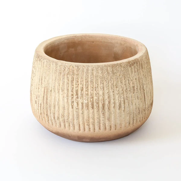 The timeless nature of terracotta is well suited to a garden space. The beautifully handcrafted Wampu Collection is handmade in Vietnam using a traditional coiling technique. The ribbed detailing only adds to their appeal. 15.5 x 23 x 23cm Please note these pots are frost proof and there is hole in each base for drainage.