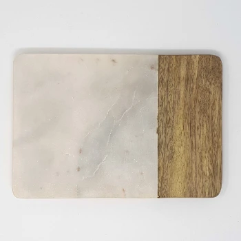 - Crafted with premium white marble and sustainably sourced mango wood, this chopping board combines elegance with durability for a standout kitchen accessory.