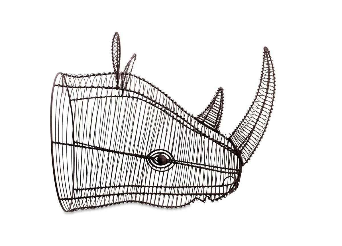 This beautiful Eko Wire rhino head has been skillfully sculpted from wire. The intricate work creates an amazing piece of decoration for your walls and is a demonstration of the skill of the craftsman who creates them. It is a true piece of art. They are the perfect size to decorate the wall above a desk or in a hallway. Combine various elements like photo frames, trophies, and other eclectic pieces. This trophy belongs to the Eko Collection of animal trophies of various sizes.