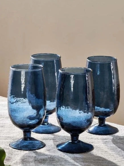 Our generously sized Yala glass is perfect for a variety of tipples, from long drinks and craft beers to cordials and milkshakes. The pretty hammered detailing creates a softly shimmering finish and the short stem makes this both a stylish and useful piece of glassware. Dimensions: 16 x 8 x 8cm Capacity: 200ml Material: Recycled Glass Care: Dishwasher Safe sold separately